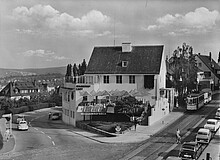 Während die Veränderungen am Gebäude Ende der 1960er-Jahre und heute eher marginal ausfallen, erkennt man beim Vergleich der Aufnahme aus dem Jahr 1943 mit jener von 1967 diese deutlich. So wurde das tief stehende Dach nach oben gezogen, die Gaube sowie die beiden Außenbereiche - die Dachterrasse links sowie die unten zur Straßenkreuzung hin, entfernt.