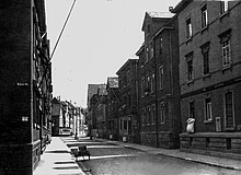 Die Sicht auf den Straßenzug von der Ecke Schmidener / Teinacherstraße aus gesehen, hat mit der Sicht aus der historischen Aufnahme nichts mehr gemein. Auf den Grundstücken der rechten Straßenseite steht heute ein moderner Hotelkomplex, die Kreuzung ist in einem Kreisverkehr umgestaltet worden und die Schienen der Straßenbahn wurden mehr in die Straßenmitte verlegt.