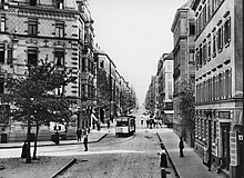 Die Aufnahme aus dem Jahr 1906 zeigt eine Sicht, die sich heute nur noch ansatzweise rekonstruieren, meint in Übereinstimmung mit der aktuellen Perspektive bringen lässt. Von links münden - am sog. »Dreieck« - Straßenbahnschienen fast rechtwinkelig aus der Breitscheid-1 in die Silberburgstraße. Ein Triebwagen der »Ringbahn« befindet sich kurz vor der Kreuzung Schlossstraße auf dem Weg durch die Silberburg- und Marienstraße zum Marienplatz. Von dort ging es dann wieder über die Hohenstaufen- zur Silberburgstraße zurück. Ab dem Sommer 1910 wurde die »Rundbahn« zur Linie 3.