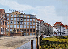 Im Vordergrund die 1911 entlang der Ecke Breite-, Werner und Kalkofenstraße von Robert Lipp erbaute Pianofabrik, die weit über die Grenzen von Stuttgart erst in Süddeutschland und dann weltwet mit ihren hochwertigen Klavieren Berühmtheit erlangte. Die Produkte hatten eine solch hohe Klangqualität, dass selbst in der Weltwirtschaftskrise weiterhin Klaviere produziert werden konnten und Anfang der 1930 Jahre die Firma zu einem weltbekanntern Instrumentenhersteller avancierte. 1931, im 100. Jubiläumsjahr, hatte die Feuerbacher Firma weltweit über 42000 Produkte ausgeliefert.