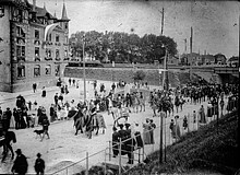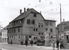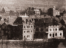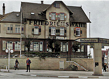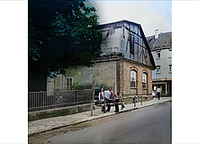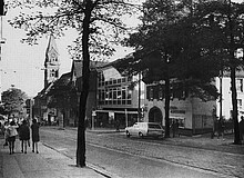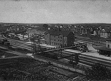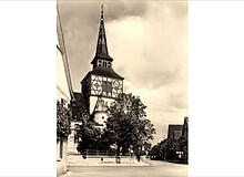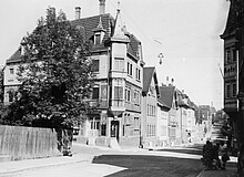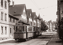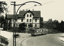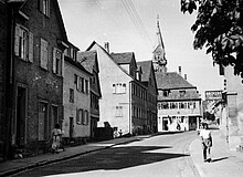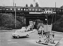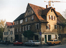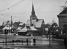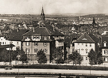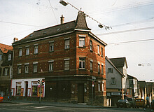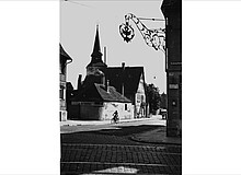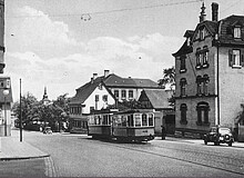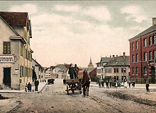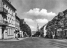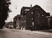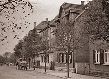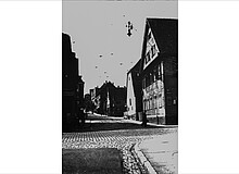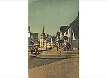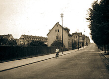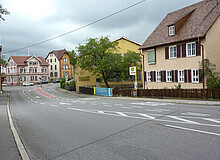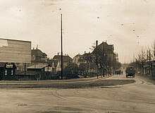 Der Betrachter blickt Richtung Norden in und über die Straße…