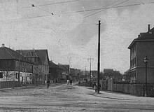 Die historische Postkarte zeigt die Arbeitersiedlung an der…