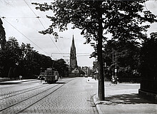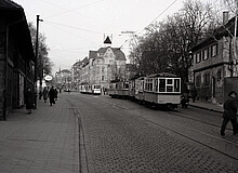 Gleich mehrere Straßenbahnen befinden sich auf der Strecke Richtung…