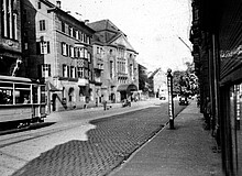Der Blick hier richtet sich aus der Rosenbergstraße kommend auf die…